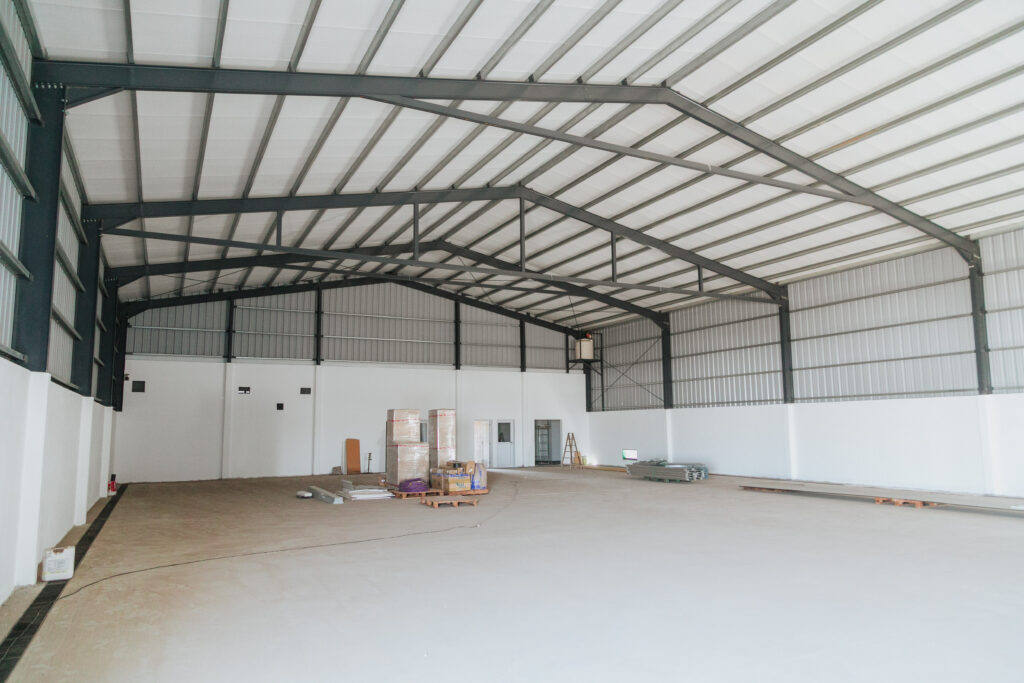 Estructura modular en perfil W de 20×30 m y altura útil de 6 m.